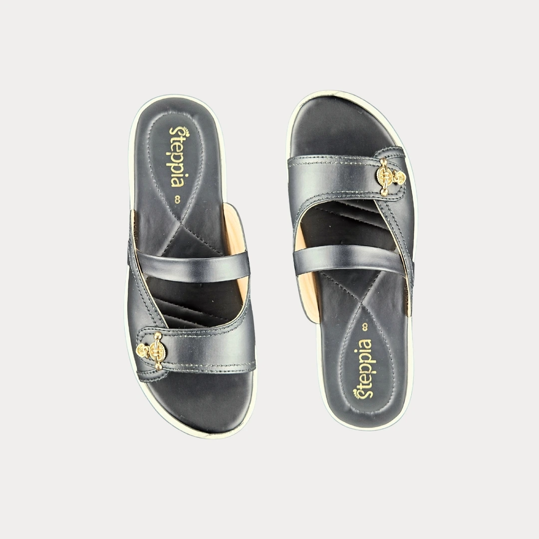 Steppia Black Skin Medicated Ladies Sandal specially un ladies ke liye design ki gai hai jo comfort ke sath style bhi chahti hain.