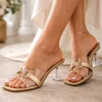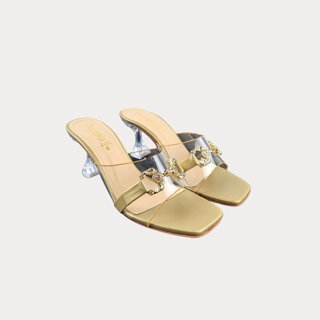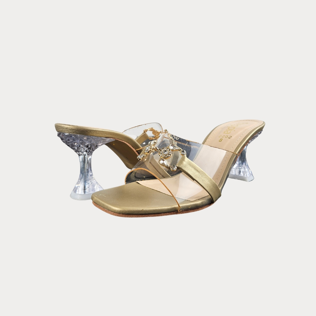 Add a touch of luxury to your look with the Steppia Golden Transparent Strap Ladies Heels. Designed for women who love elegance and modern fashion, these heels feature a beautiful golden base combined with clear transparent straps, giving a chic and premium appearance.