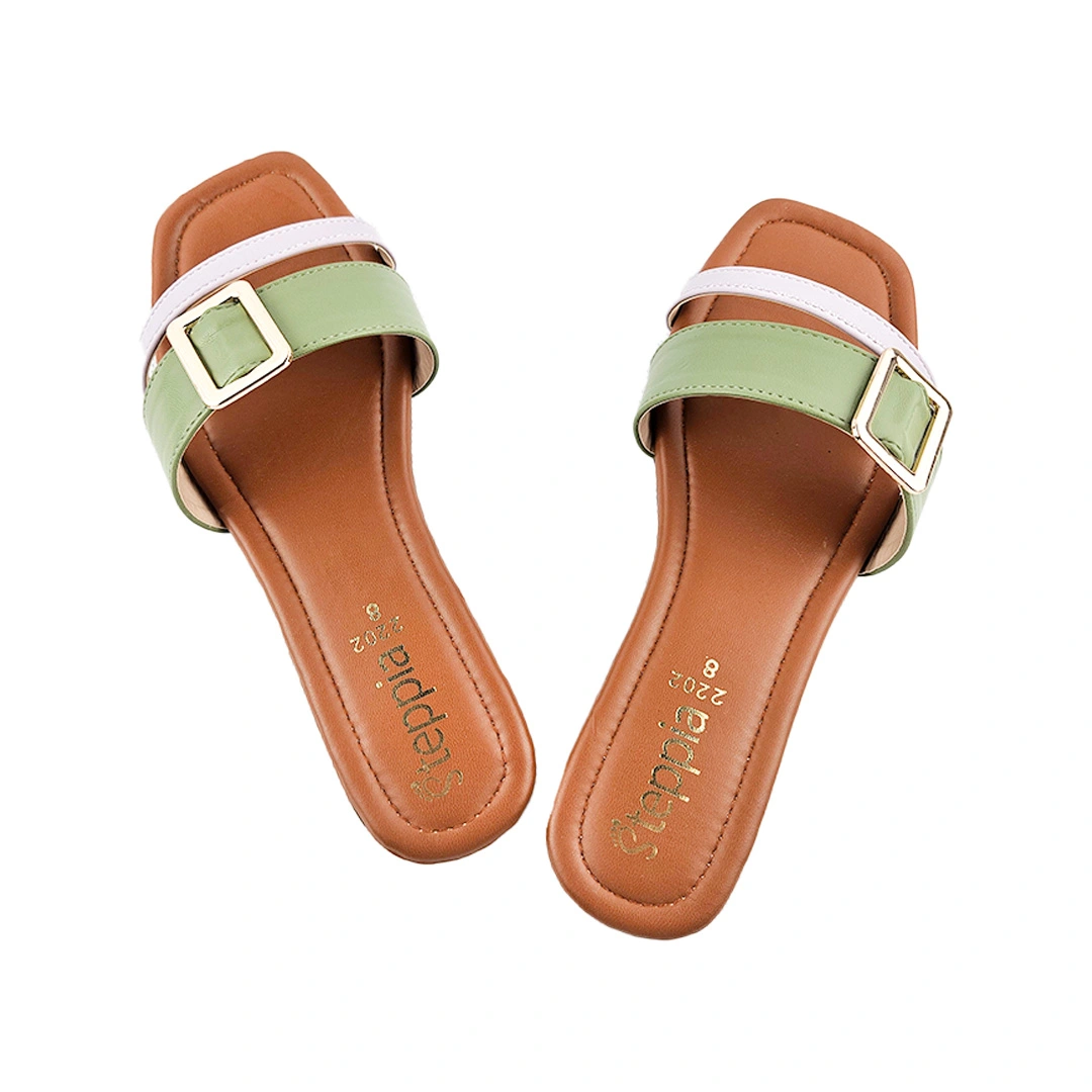 Elegant flat sandals with a soft cushioned sole and modern buckle detail. Perfect for everyday comfort with a touch of style.